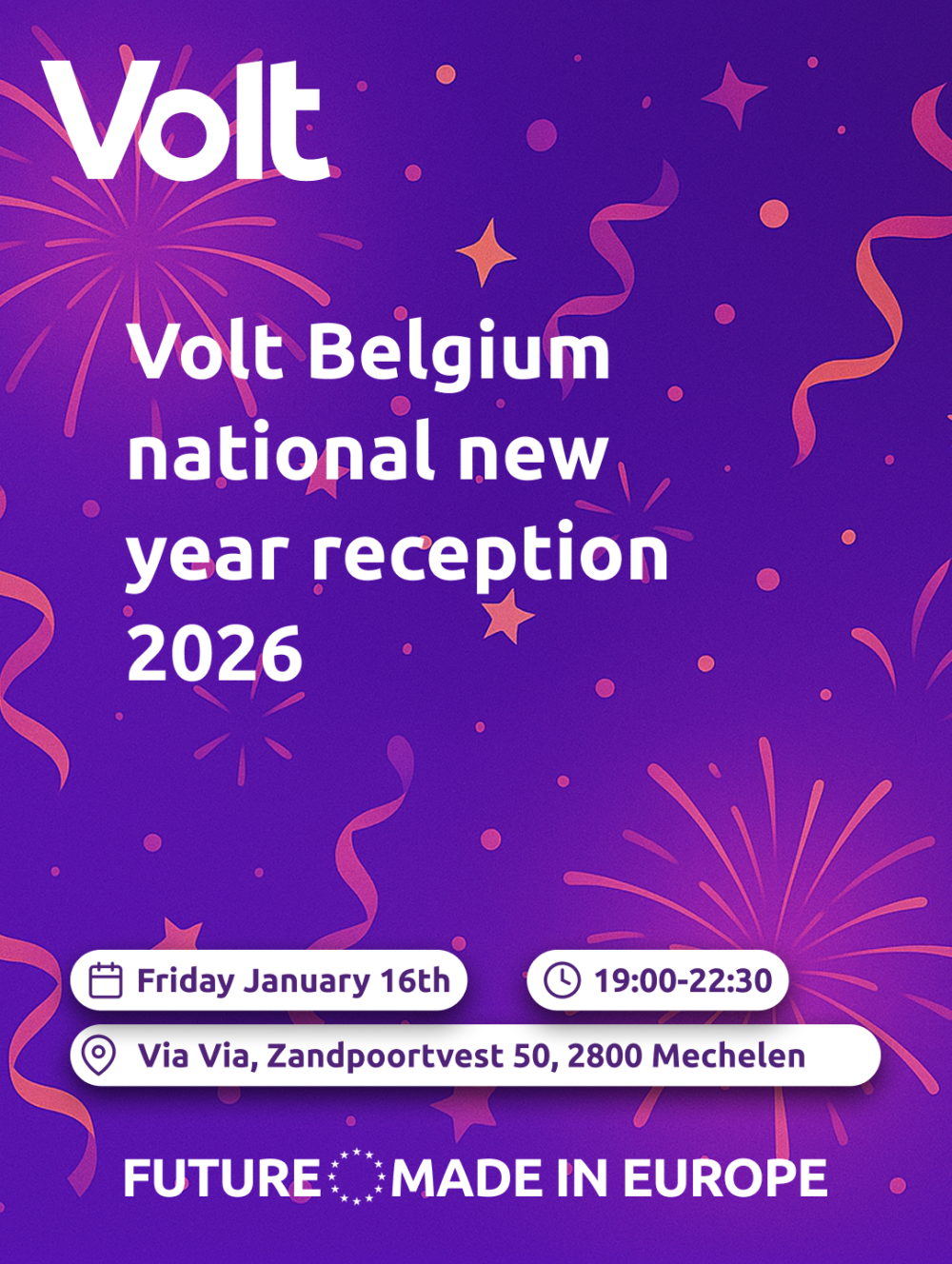 ✨ Après le grand succès de la réception du Nouvel An de l’an dernier à Gand, le conseil de Volt Belgique a le plaisir de vous inviter à la Réception nationale du Nouvel An de Volt Belgique 2026 — cette fois à Malines, à seulement quelques minutes à pied de la gare ! 🚆